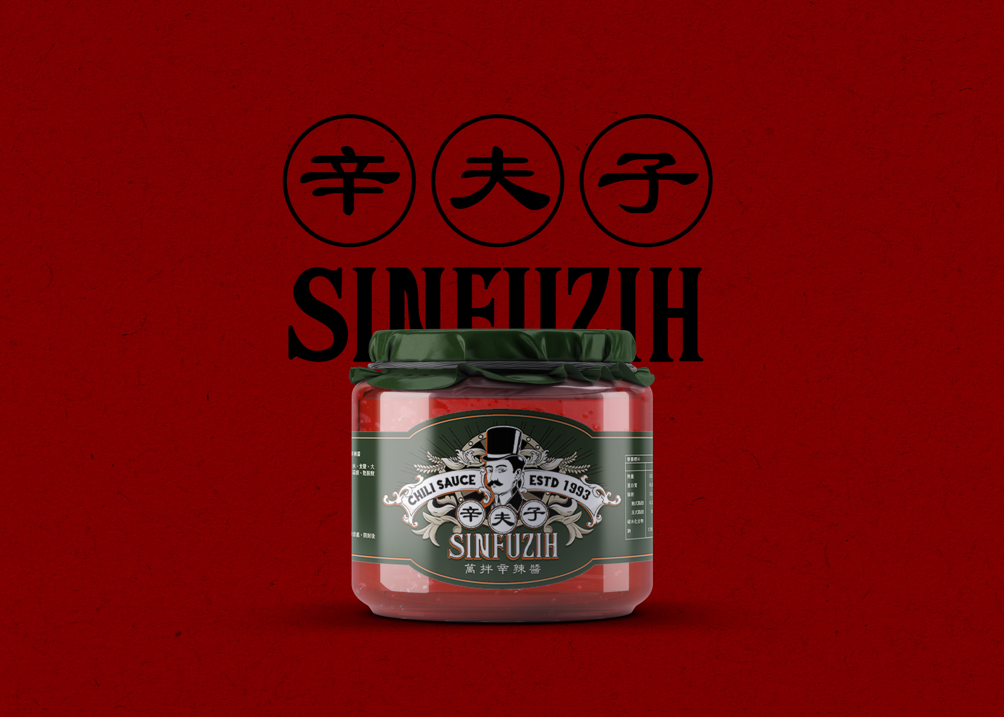 為傳統的辣醬產品重新打造品牌形象,在執行這個專案時,從頭到尾都只有一個單純的想法,就是想讓人第一眼看到就覺得「好勁」、「好辣」,想讓它有種功夫醬的感覺,於是在整體上揉合了中式風格,並選用渾厚有勁的隸書體做為文字基底,在筆劃個性上帶入辣椒本身有機輪廓的曲線,透過一個充滿文化底蘊的形象,來襯托這個傳承數載、蘊藏百般風味的祖傳辣醬。